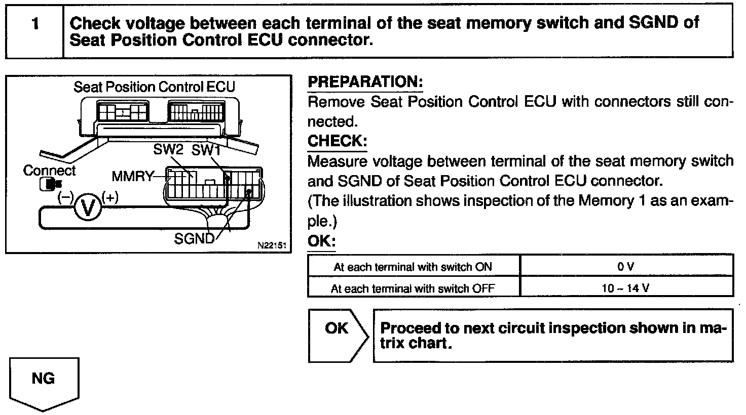 Seat memory switch send memory and return signals to the seat position control ECU.
