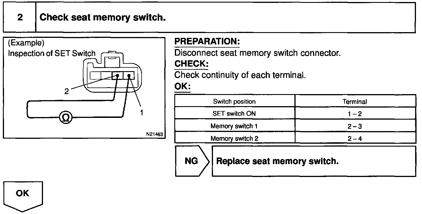 Memory Positioning Switch: Testing and Inspection