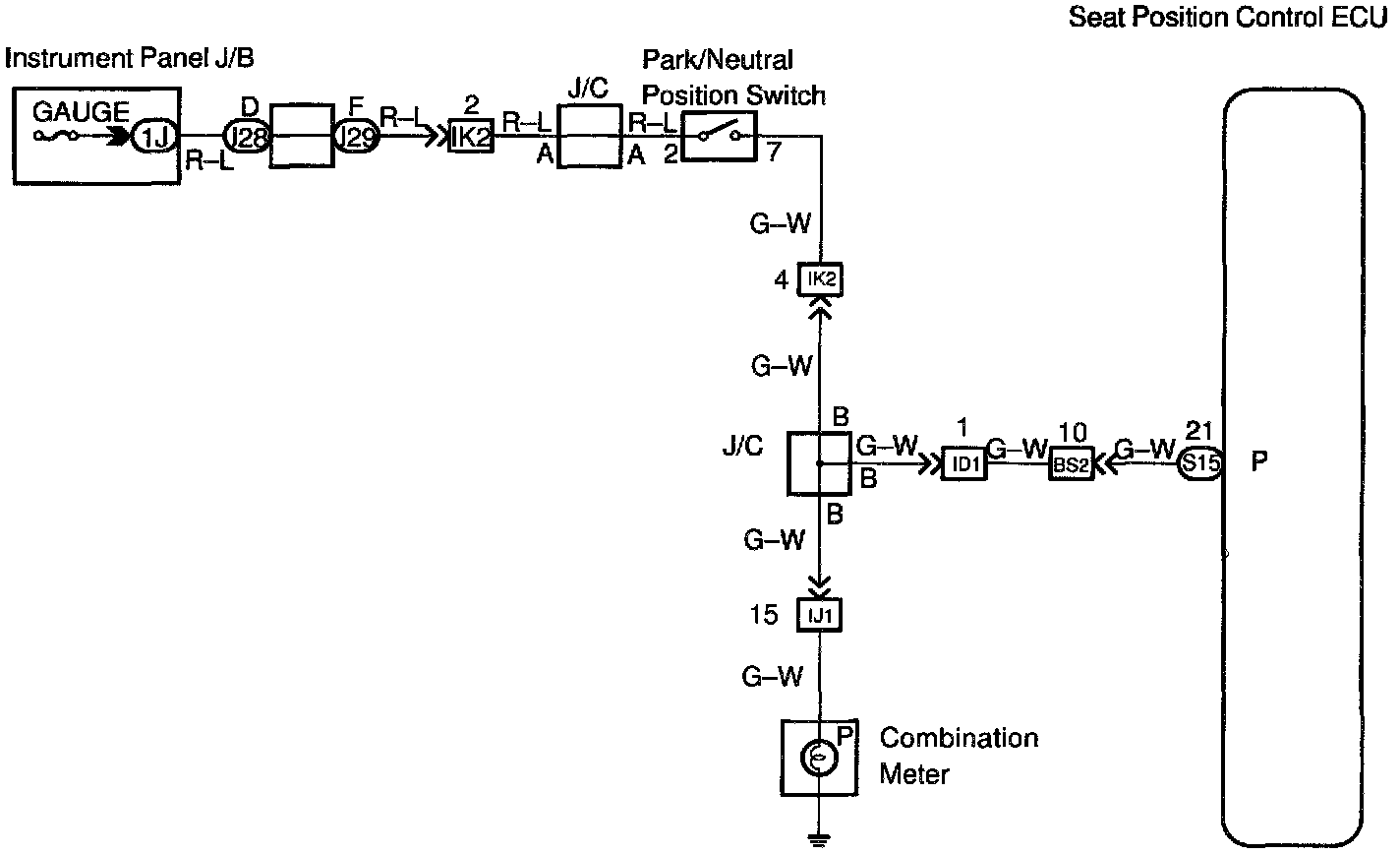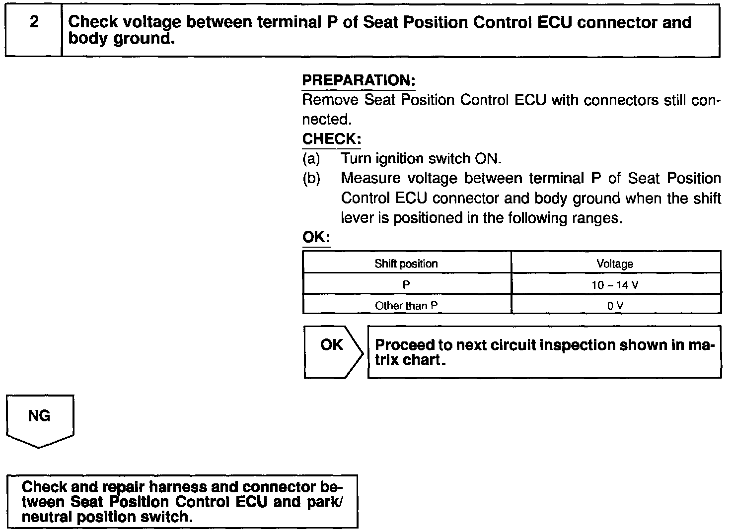 The park/neutral position switch detects the P position when the lever is shifted into P and sends a signal to the ECU. When the return switch is turned ON with the IG SW ON and the shift in P position, the ECU performs return operation.