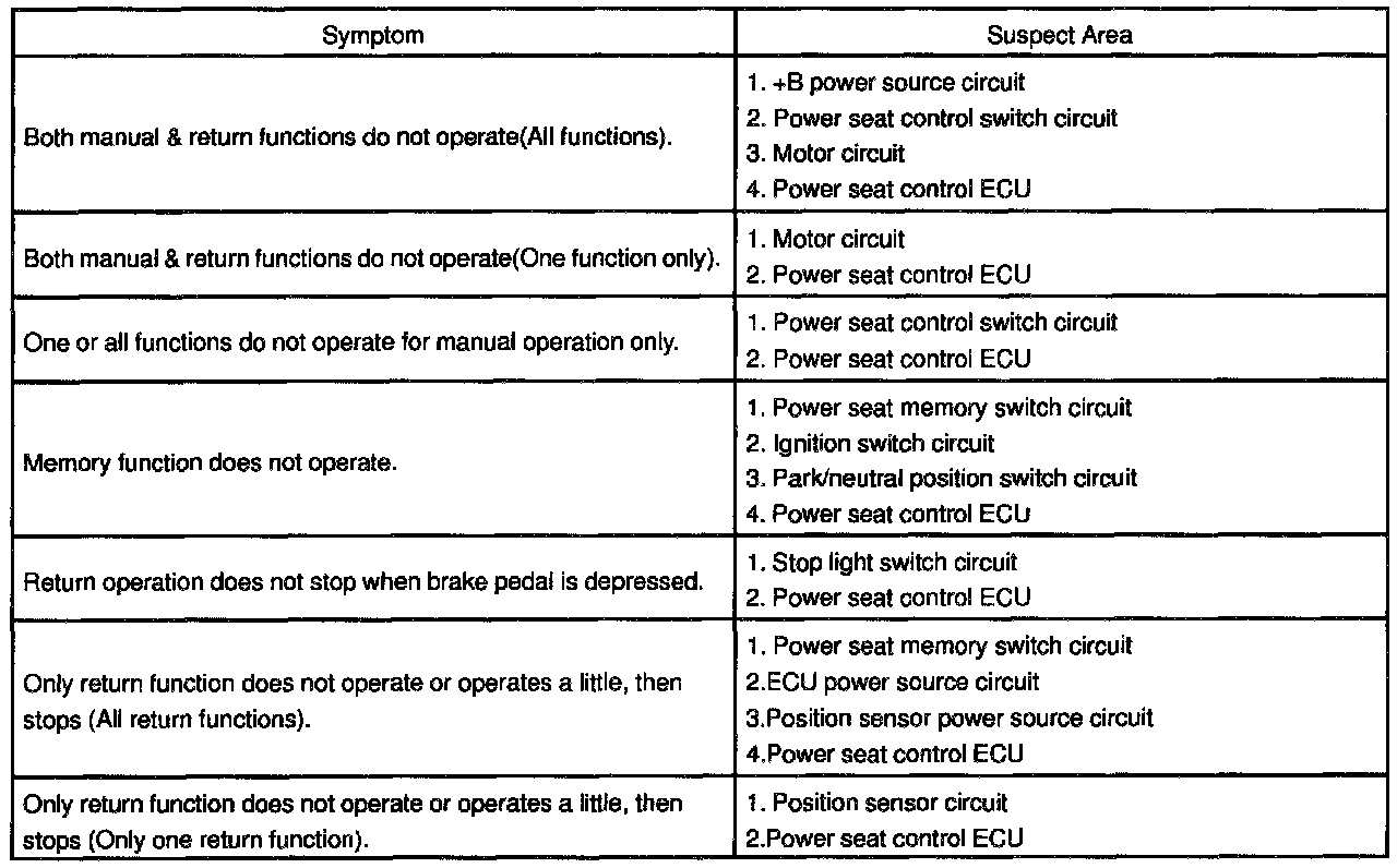 - If the trouble still reappears even though there are no abnormalities in any of the other circuits, then check and replace the Seat Position Control ECU as the last step.