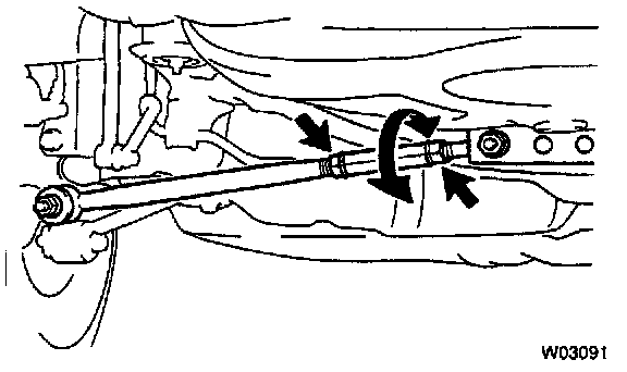 3. Turn the left and right lower suspension arms an equal amount to adjust toe-in.