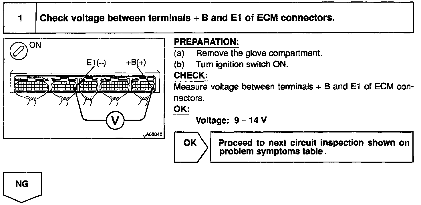 This signal causes current to flow to the coil, closing the contacts of the EFI main relay and supplying power to the terminals +B of the ECM.