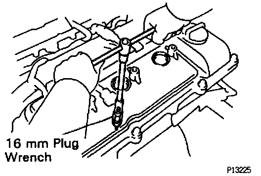 (d) Using a 16 mm plug wrench, remove the 6 spark plugs from the RH and LH cylinder heads.