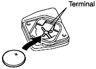 NOTE: Face the battery upward. Take care not to deform the terminals.