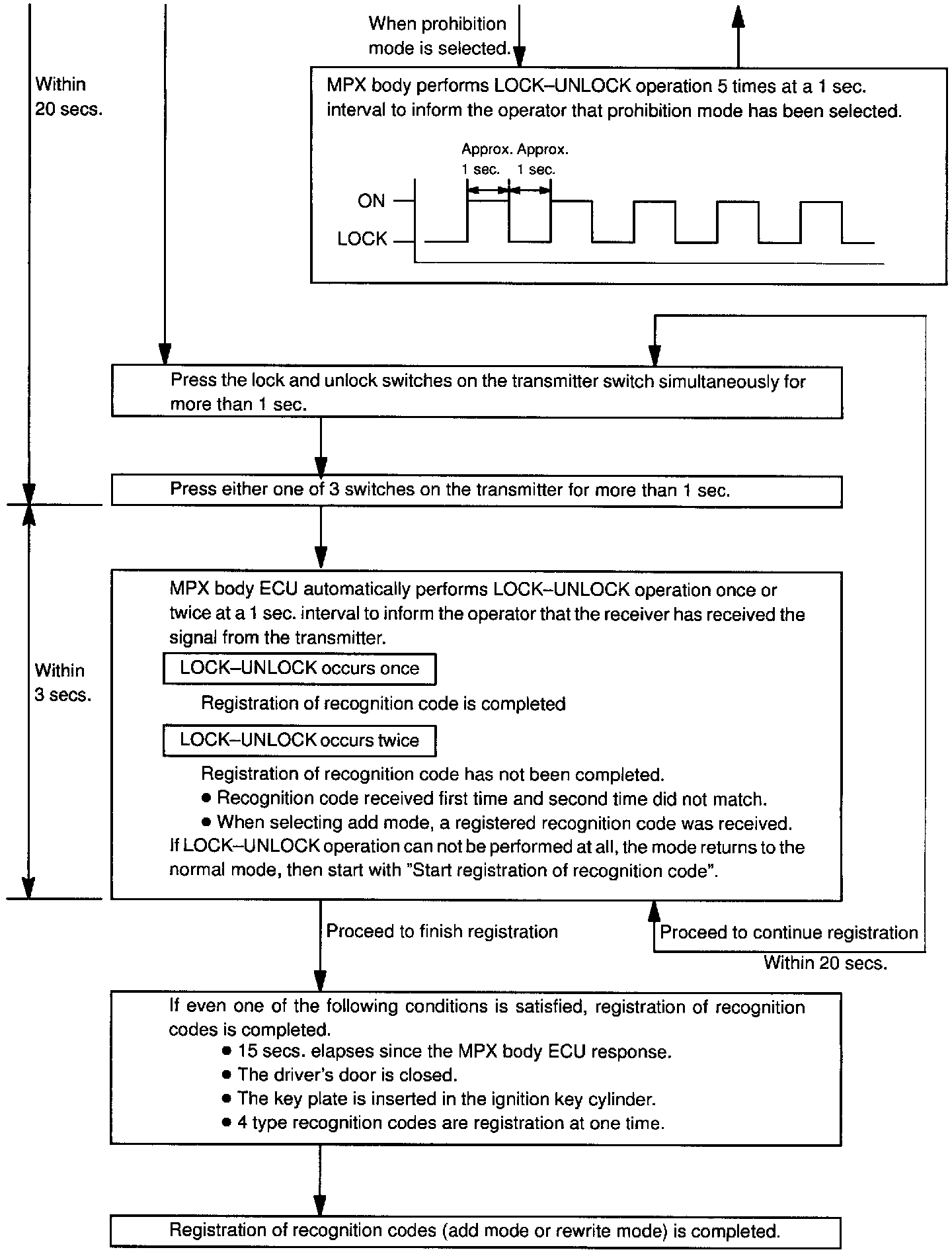 b. Follow the chart to register the transmitter recongnition code at the wireless door lock control receiver.