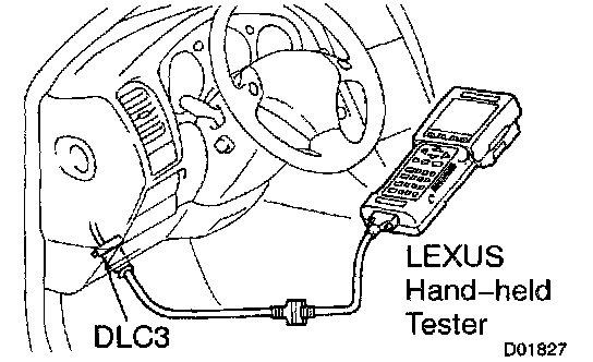 1) Turn the ignition switch OFF, connect the LEXUS hand-held tester to DLC3.