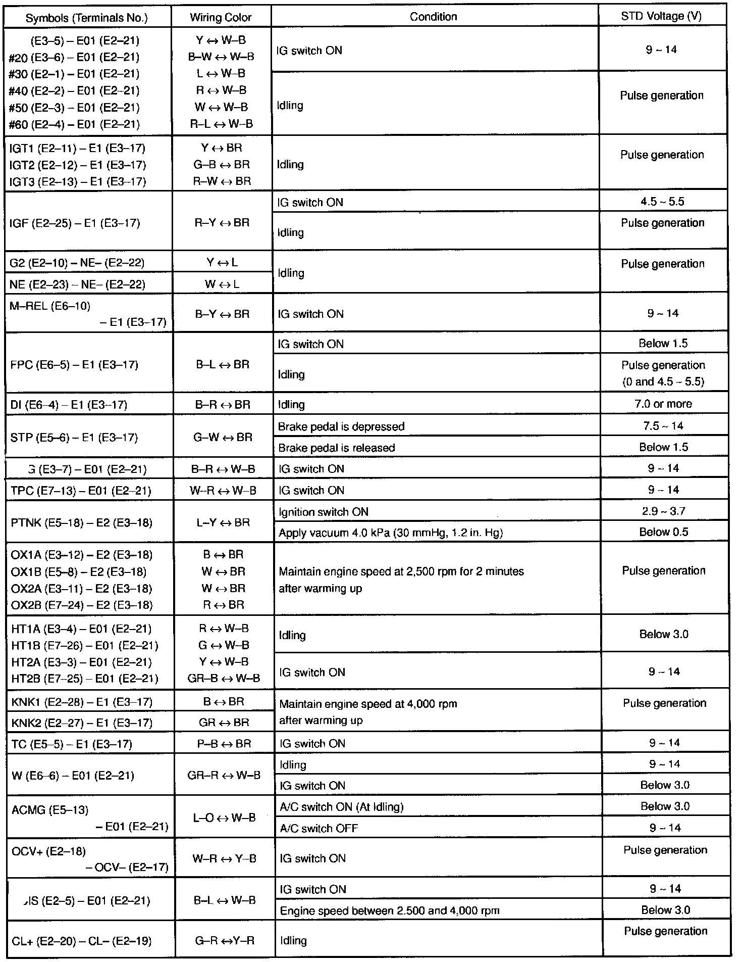 ECM Pinout Values Chart 2 Of 3: