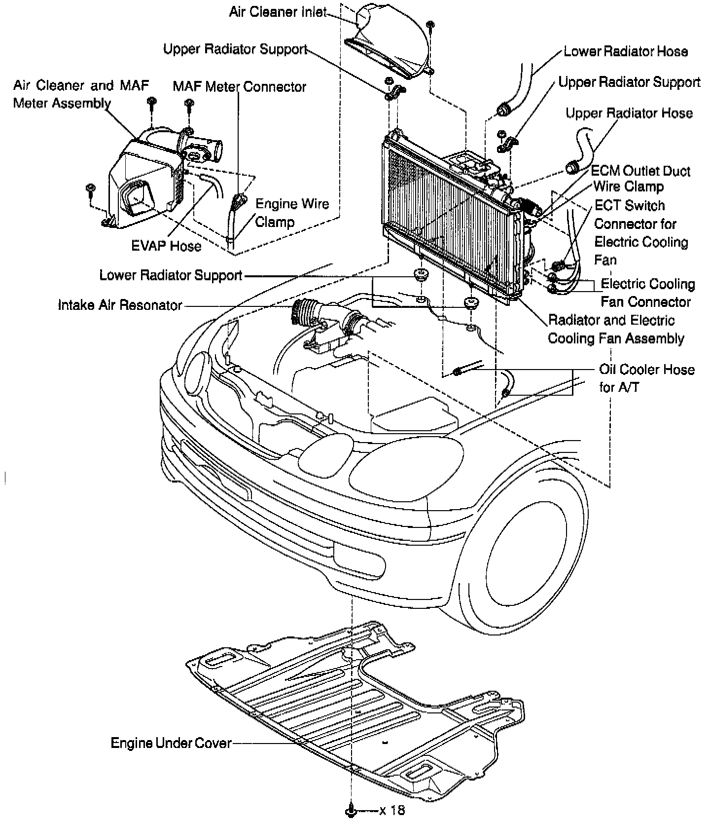 Radiator, Cooling Fans Assb, Reservoir Hose: