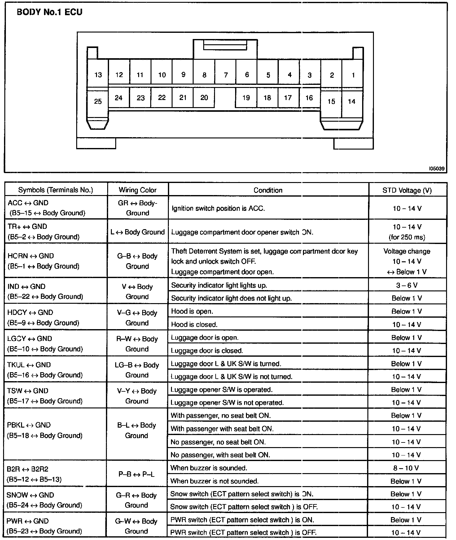Pinout Values and Diagnostic Parameters