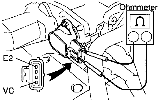 (b) Using an ohmmeter, measure the resistance between terminals VC and E2.