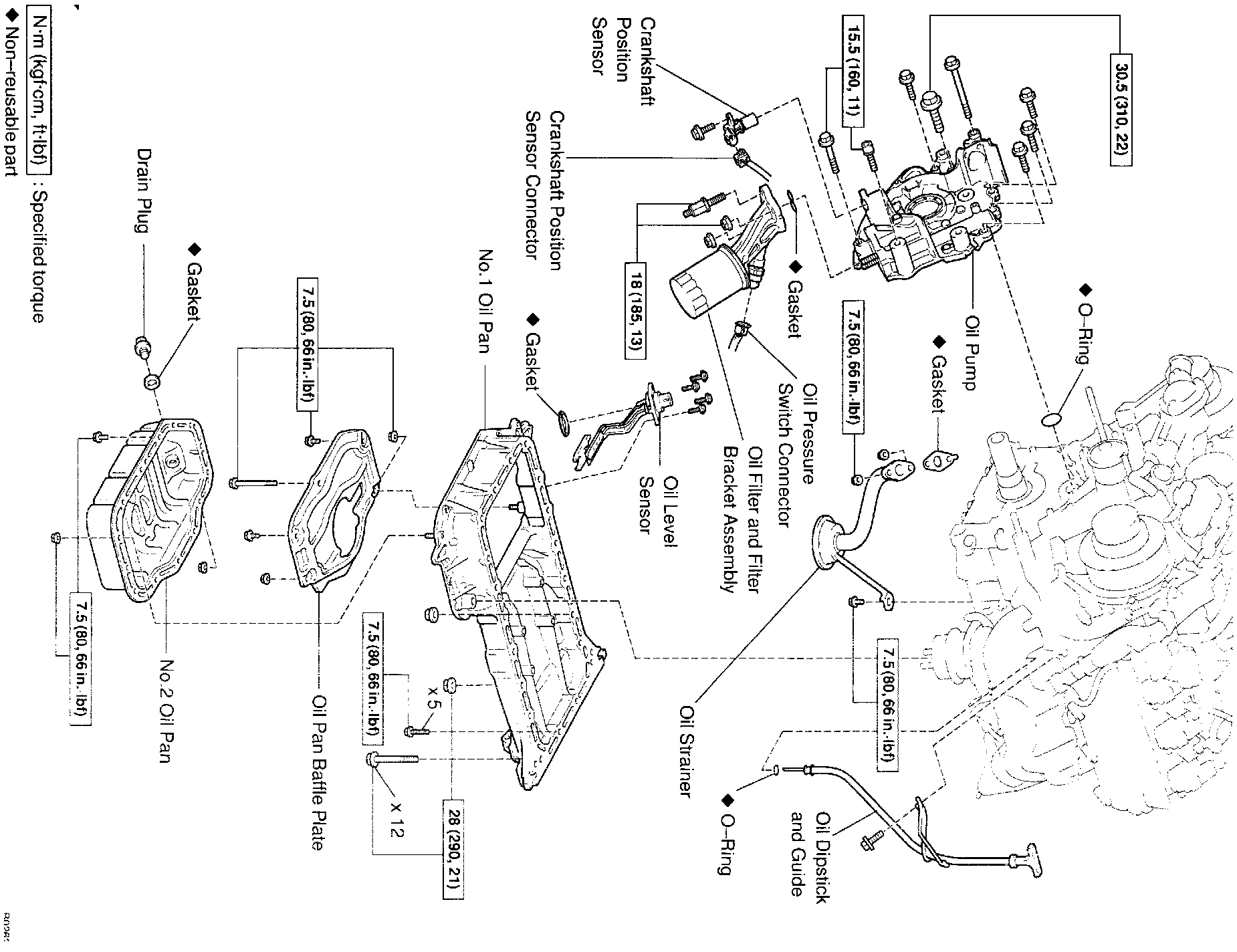 NO.1 AND NO.2 OIL PANS, OIL PUMP AND RELATED COMPONENTS