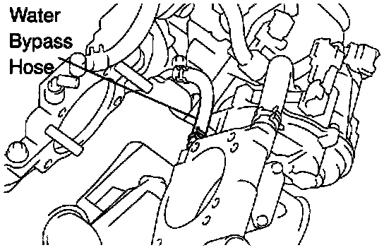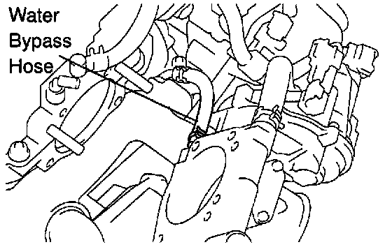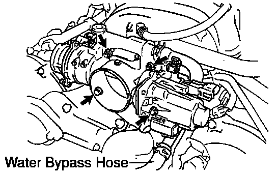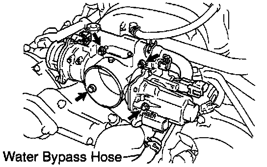(d) Disconnect the water bypass hose from the manifold thermostat on the throttle body, and remove the throttle body.