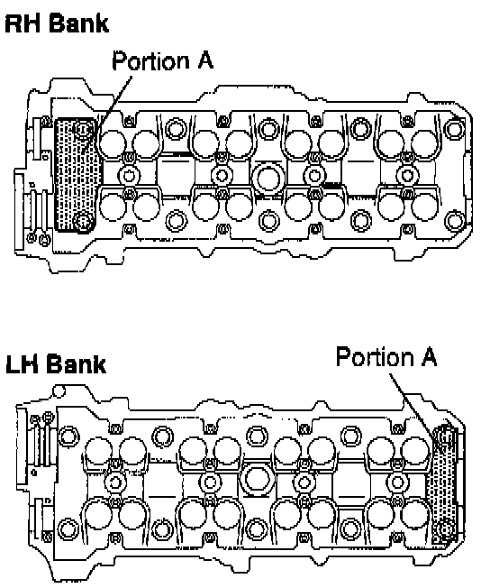 NOTICE: Do not drop the plate washer for cylinder head bolt into portion A of the cylinder head. If dropped into portion A, the plate washer will pass through the cylinder head and cylinder block into the oil pan.