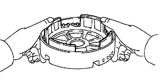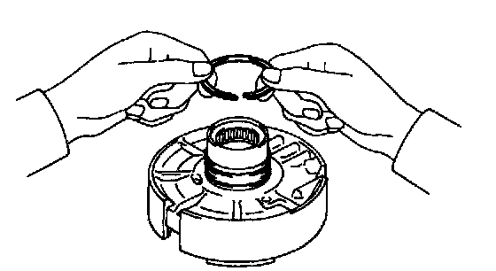 b. Install the 2 oil seal rings to the O/D support groove, then snug them sown by squeezing their ends together.