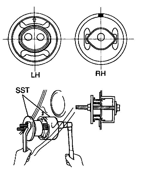 - Align the SST straight so that the bolt of the SST is parallel with the center line of the mounting cushion.