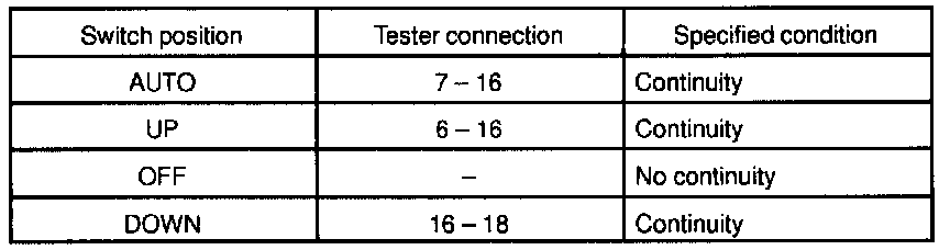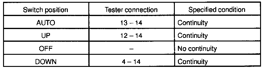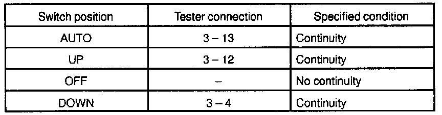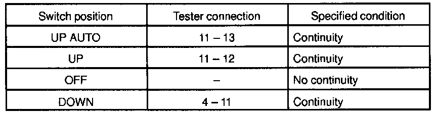 INSPECT POWER WINDOW SWITCH CONTINUITY