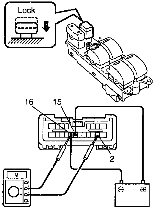 d. Set the window lock switch to the lock position, check that all the passenger's power window switch illuminations go out.