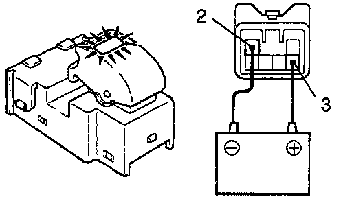 Connect the positive (+) lead from the battery to terminal 3 and the negative (-) lead to terminal 2, and check that the indicator light lights up.