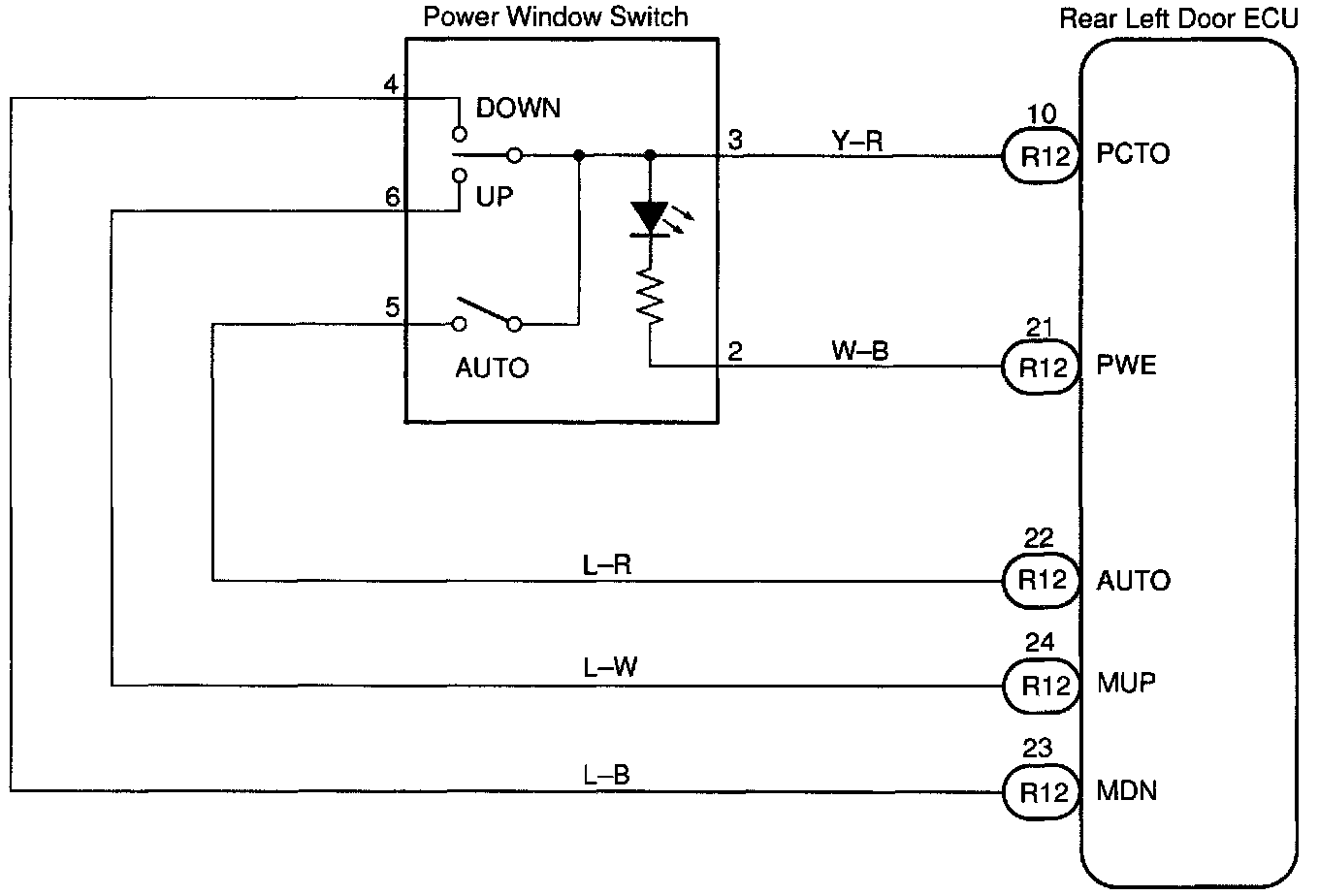Power Window Switch Circuit (Rear Left Door)