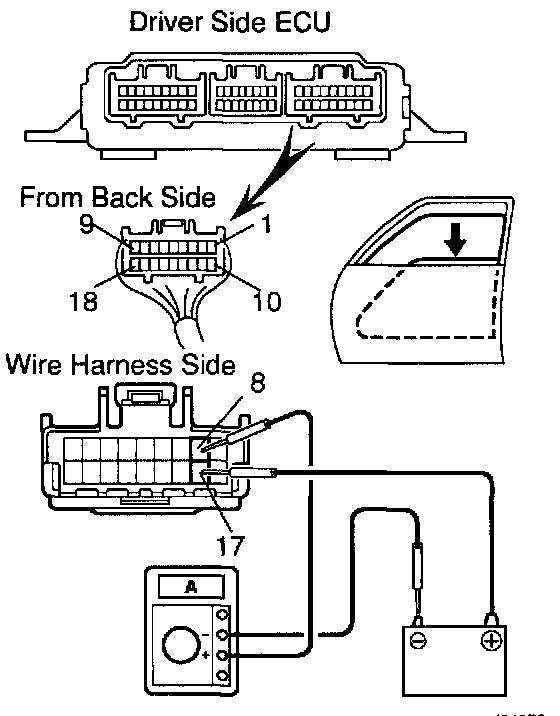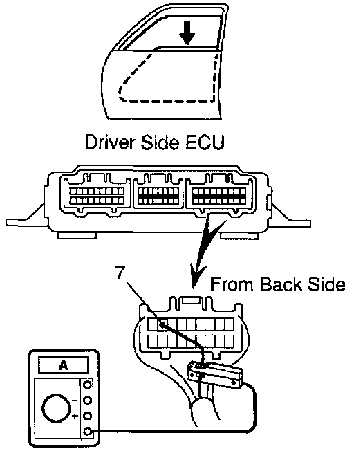 INSPECT ONE TOUCH POWER WINDOW SYSTEM/CURRENT OF CIRCUIT (Using an ammeter with a current-measuring probe)
