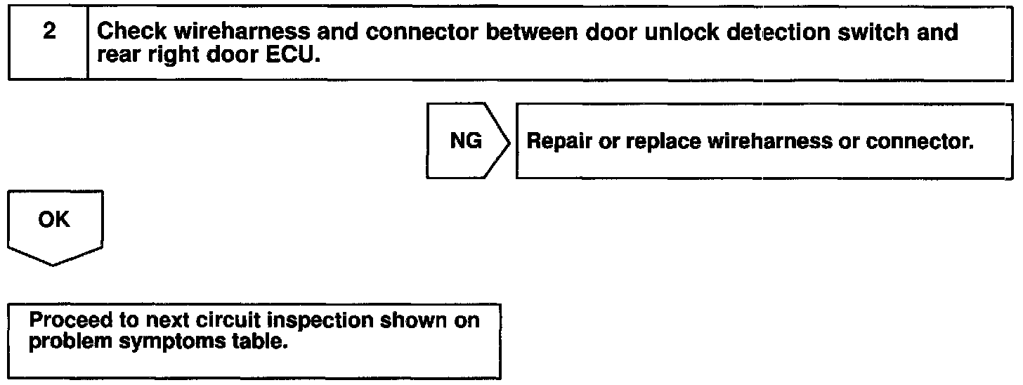 The door unlock detection switch is built in the door lock motor assembly. This switch is ON when the door lock knob is in the unlock position and OFF when the lock knob is in the lock position. The ECU detects the door lock knob conditions is this circuit. It is used as one of the operating conditions for the key confinement prevention function.