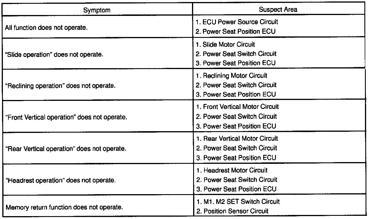 - If the trouble still reappears even through there are no abnormalities in any of the other circuits, then check and replace the Power Seat Position ECU as the last step.