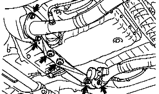 c. Connect the front exhaust pipe to the 2 front TWC and pipe support bracket with the 4 bolts and 4 new nuts.