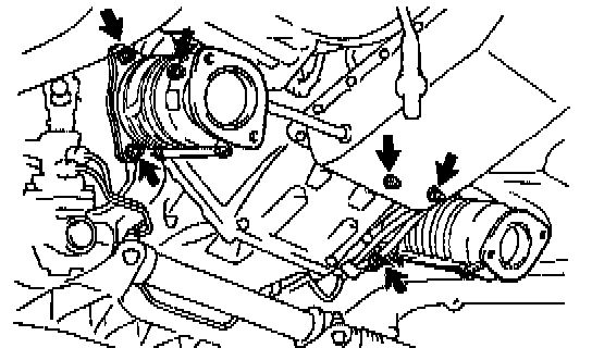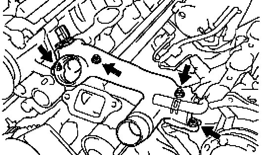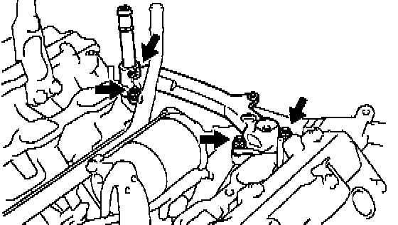 b. Install the 4 nuts holding the water bypass joint to the cylinder heads. Alternately tighten the nuts.