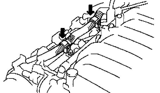 d. Tighten the 2 bolts holding the pipe support bracket to the transmission.