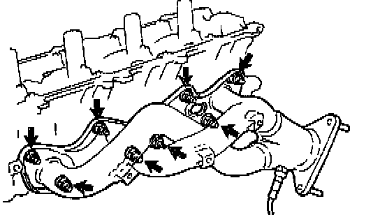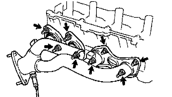 b. Install the exhaust manifold with 8 new nuts. Uniformly tighten the nuts in several passes.