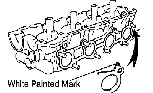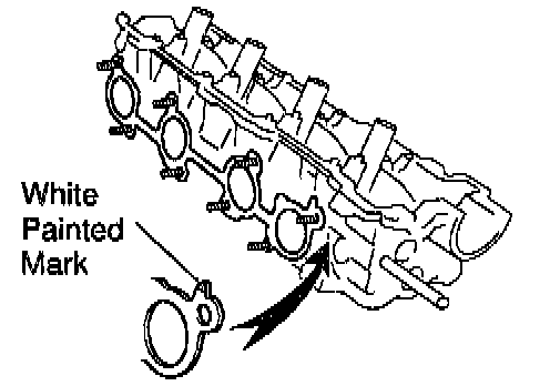 a. Place a new gasket on the cylinder head with the white painted marks facing the manifold side.