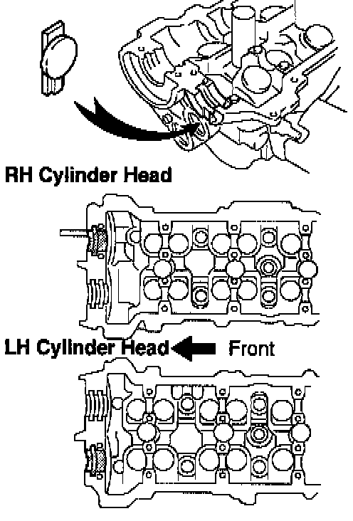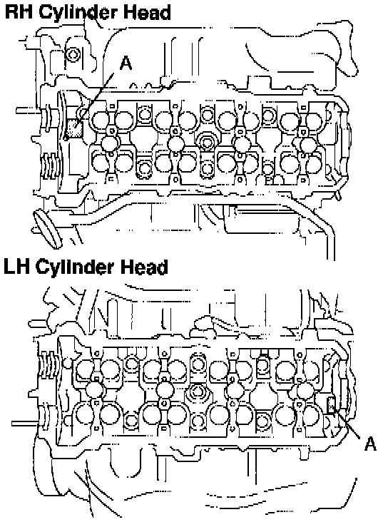 HINT: On the rear side of the cylinder head gasket are marks to distinguish the LH and RH banks, a "R" mark for the RH bank and a "L" mark for the LH bank.