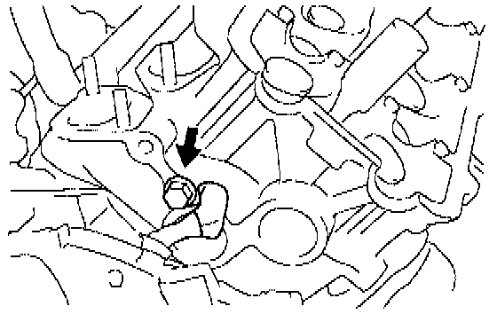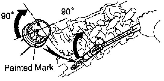 13) Boring the service bolt installed in the driven subgear upward by turning the hexagon wrench head portion of the camshaft with a wrench.