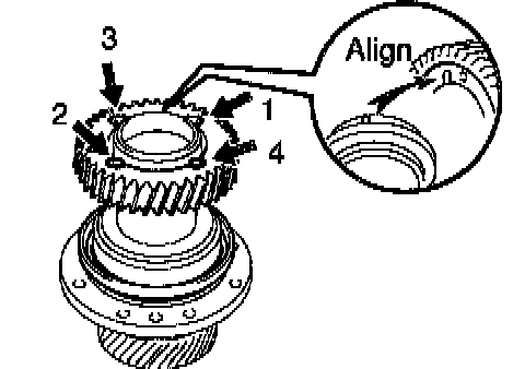 e. Align the gear teeth of the main gear and sub gear, and tighten the service bolt.