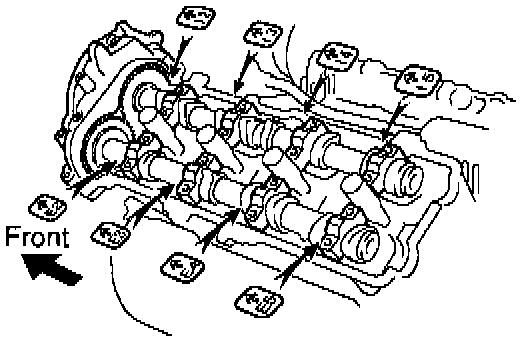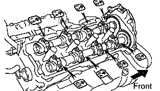 HINT: Align the arrow marks at the front and rear of the cylinder head with the mark on the bearing cap.