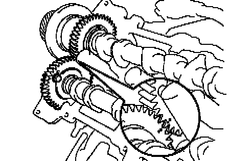 3) Engage the intake to the exhaust gear by meeting the timing marks (2 dot marks) on each gear.
