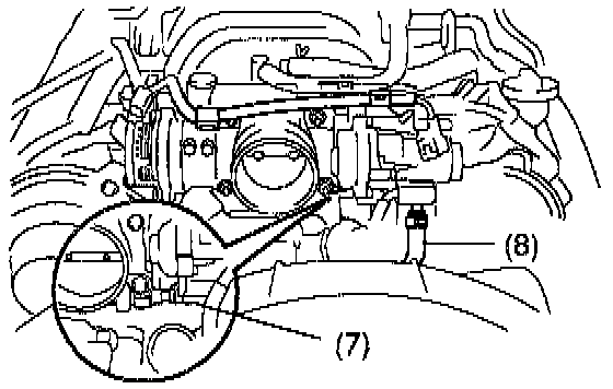 8) No.7 water bypass hose (from front water bypass joint) from throttle body