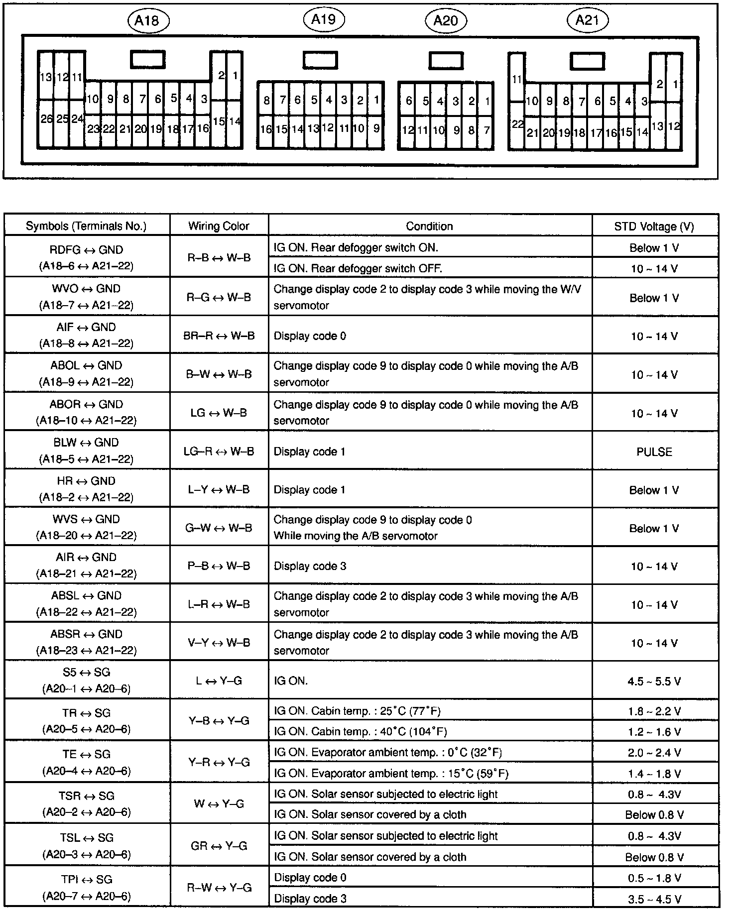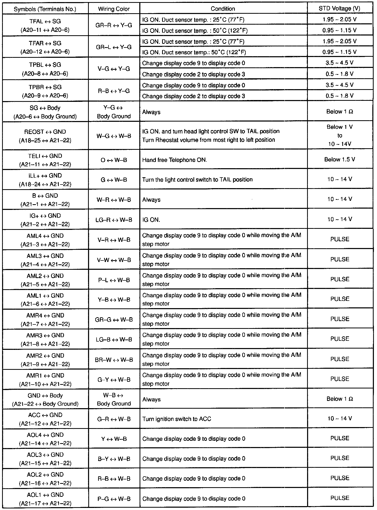 Pinout Values and Diagnostic Parameters
