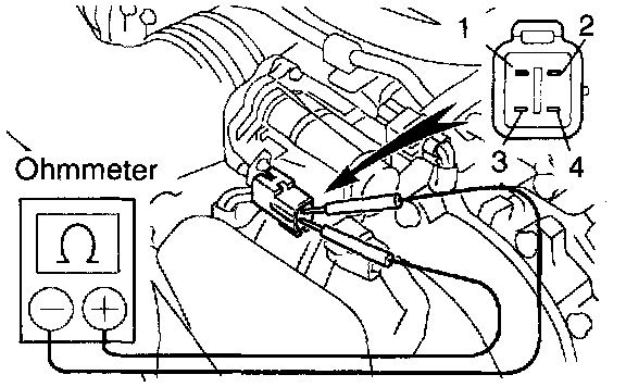 (c) Using an ohmmeter, measure the clutch resistance between terminal 3 (CL-) and 4 (CL+).