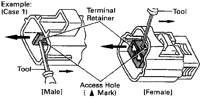 Type which cannot be pulled as far as Power Lock insert the tool straight into the access hole of terminal retainer as shown.