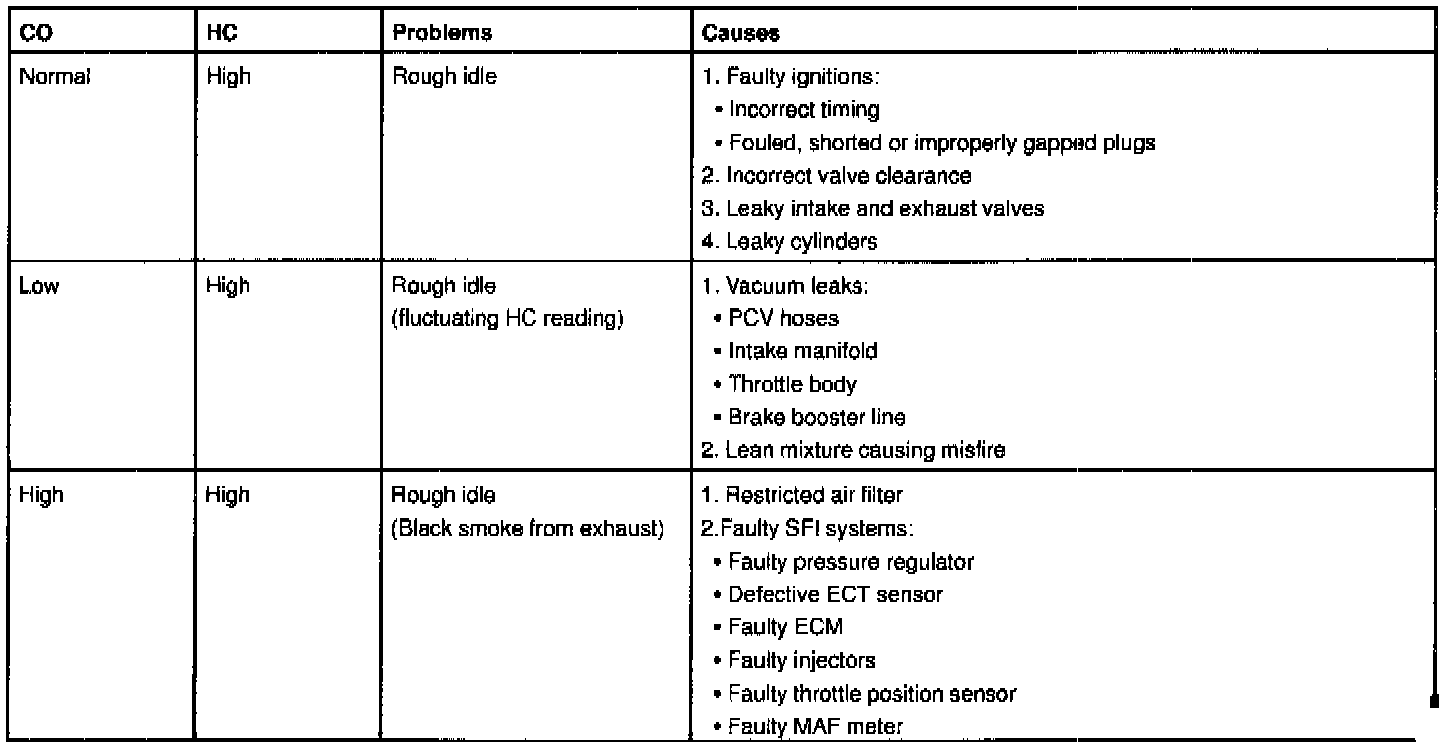 If the CO/HC concentration does not comply with regulations perform troubleshooting in the order given.