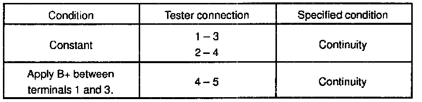 INSPECT ENGINE MAIN RELAY CONTINUITYIf continuity is not as specified, replace the relay.
