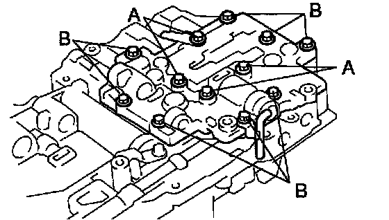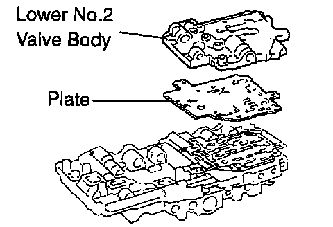 c. Align the holes of lower No.2 valve body with those of plate and place them on the lower No.1 valve body with aligning all the holes.