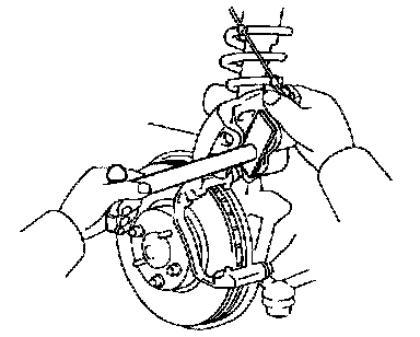 HINT: Do not disconnect the flexible hose from the caliper.