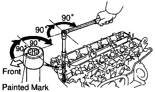 f. Retighten cylinder head bolts by an additional 90° shown.