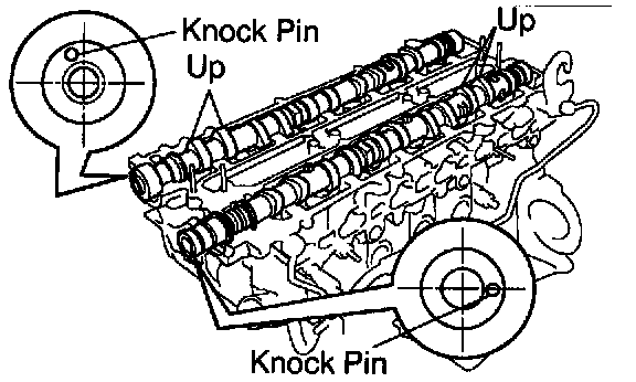 1) Align the camshaft knock pin with the groove in the pulley, and slide on the pulley.