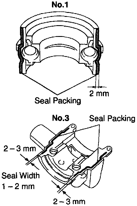 i. Apply seal packing to the bearing caps as shown.