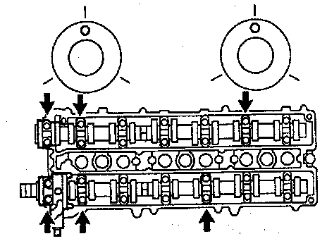 e. Temporarily tighten these bearing cap bolts uniformly and alternately, in several passes, until the bearing caps are snug with the cylinder head.