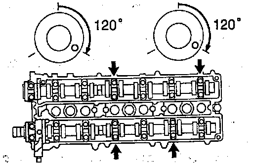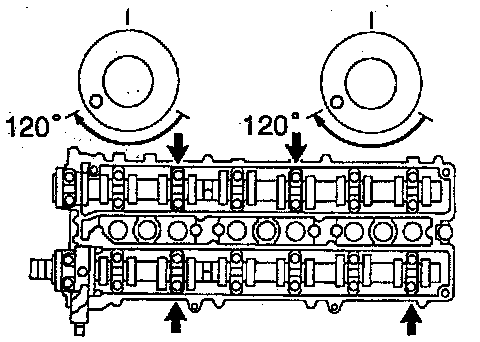 s. Turn the camshaft a further 1/3 of a revolution.