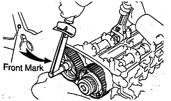 2) Slide the timing pulley on the camshaft, facing the front mark forward.